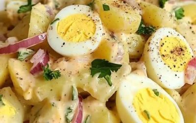 Sałatka ziemniaczana z jajkami Składniki:800 g ziemniaków (odmiany Charlotte lub Ratte), 4 jajka na twardo, 1 szalotka, drobno posiekana,1 łyżka…