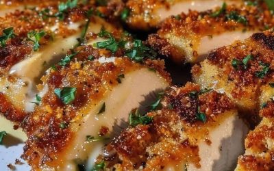 „Chrupiący, złocisty kurczak w aromatycznej panierce z czosnku i parmezanu. Idealny na prosty, a zarazem efektowny obiad!” Składniki 4 piersi…