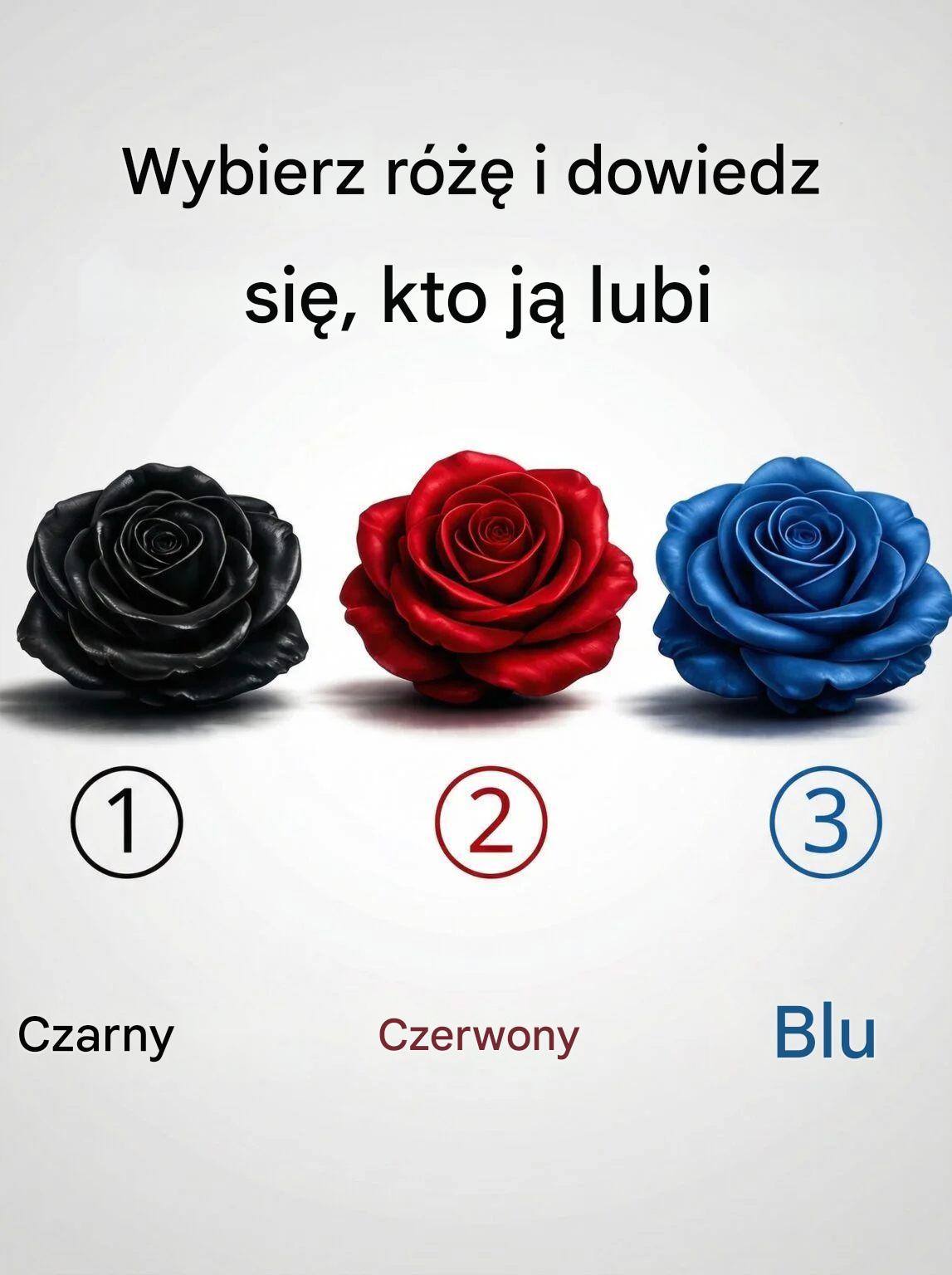 Są obrazy, które na pierwszy rzut oka wydają się proste, ale potrafią natychmiast rozbudzić wyobraźnię. Ten wybór róż jest jednym z nich. Przed tobą widać tylko trzy kwiaty: czarną różę, czerwoną i niebieską. Mimo to wiele osób instynktownie kieruje się ku jednemu z nich. A pytanie jest bardziej intrygujące, niż mogłoby się wydawać na pierwszy rzut oka: czy twój wybór zdradza, kim jest osoba, która jest tobą zainteresowana, czy też osoba, która obserwuje cię z cienia z czułością?